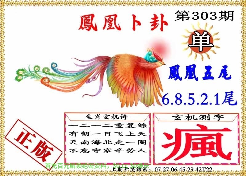 305期:四字中特/彩霸王有玄机/另一句解一肖/凤凰马经/彩霸王诗
